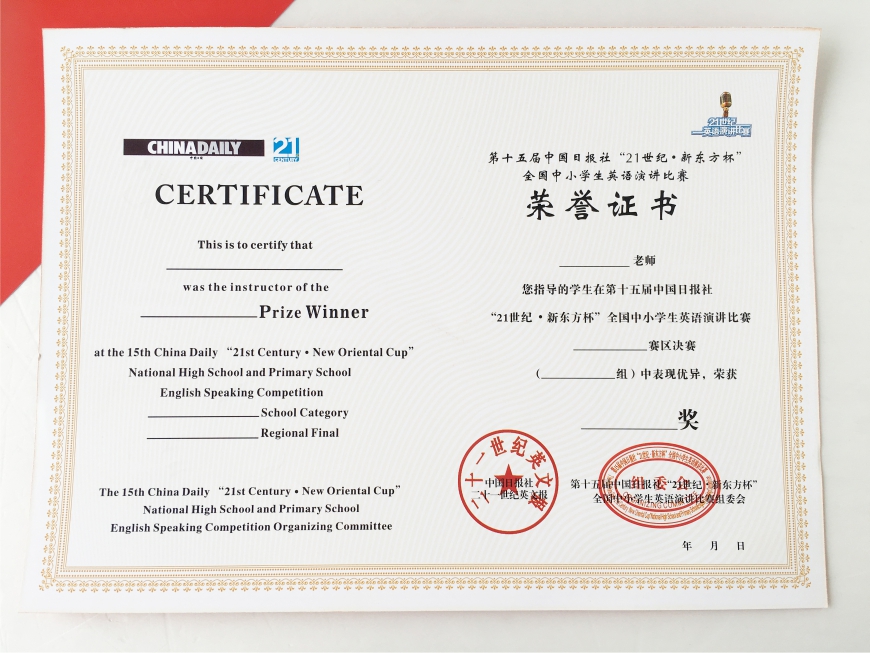 二十一世纪英语荣誉证书